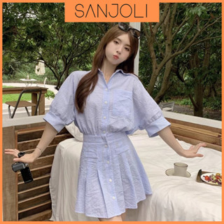 SET Sơ Mi Nữ Sanjoli Bộ Sơ Mi Sọc Xanh Và Chân Váy Xếp Ly Năng Động Trendy Phong Cách Hàn Quốc Mã VD029