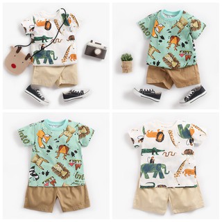 Set Đồ 2 Món Sanlutoz Họa Tiết Hoạt Hình Màu Xanh Lá Thời Trang Mùa Hè Cho Bé Trai