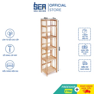 Kệ sách 5 tầng SEADECOR bằng gỗ cao su chống mối mọt bền đẹp đa năng phù hợp với mọi không gian trong gia đình