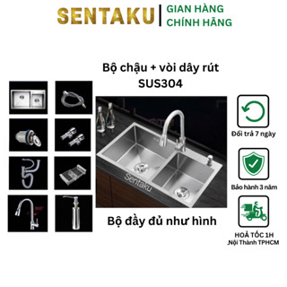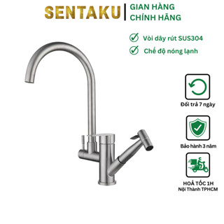 Vòi rửa chén bát Nóng Lạnh Sentaku inox sus 304 vòi kép đa năng dây rút cao cấp,tặng cặp dây nóng lạnh bảo hành 24 tháng