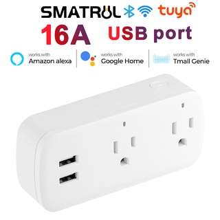 Phích cắm thông minh SMATRUL Tuya kết nối wifi có cổng USB 16A hỗ trợ hẹn giờ/điều khiển giọng nói/Google Home Alexa