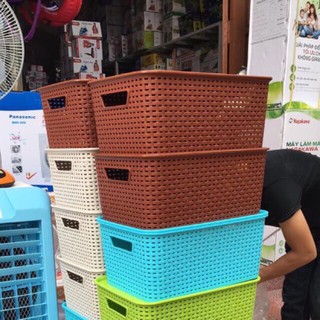 [Combo 5] Giỏ Đựng Đồ Bằng Nhựa Có Nắp Giả Mây Kiểu Hàn Quốc HSL