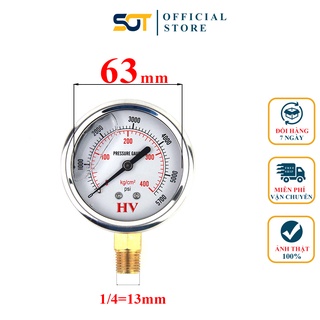 Đồng hồ đo áp suất hơi HV, khí nén mặt 63mm DẦU