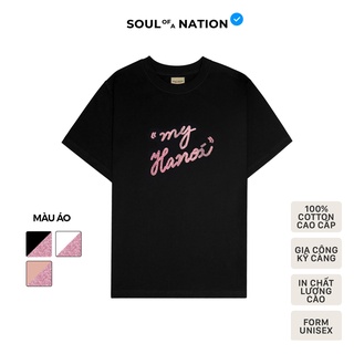 Áo thun unisex In hiệu ứng cao cấp KIM TUYẾN HỒNG chữ MY HANOI form basic 100% cotton SOUL OF A NATION VER 2 - Đen