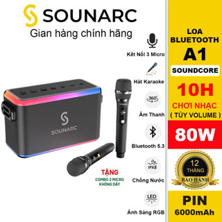 Loa Karaoke Bluetooth 5.3 SOUNARC A1 + 2 Micro Không Dây, Công suất 80W Loa di động Chống Nước IPX6 - Bảo Hành 12 Tháng