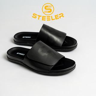 Dép Quai Ngang Nam & Unisex Steeler Slide Dán Xé Đen Quai Bằng Microfiber Chống Thầm Chống Bẩn - Thương Hiệu Steeler