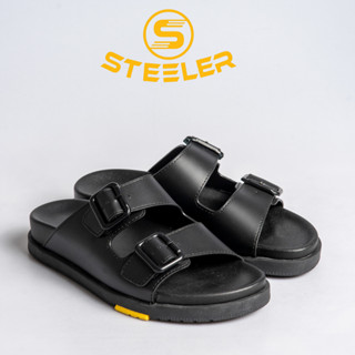 Dép Quai Nam Sola Unisex Quai Ngang Đen Chất Liệu Da Bò May Âm Đế - Thương Hiệu Steeler
