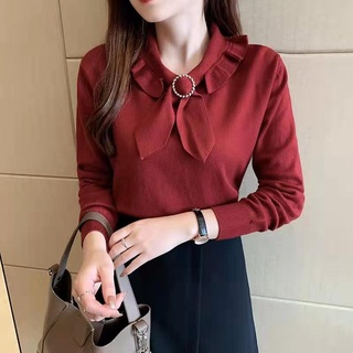 SUXI Áo Dệt Kim Tay Dài Dáng Rộng Màu Sắc Đơn Giản Phong Cách Vintage