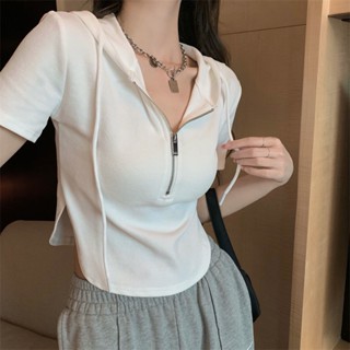 SUXI Áo Hoodie Tay Ngắn Dáng Ôm Thời Trang Mùa Hè Dành Cho Nữ