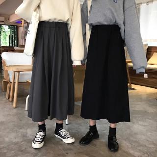 SUXI Chân váy dài lưng cao phong cách retro