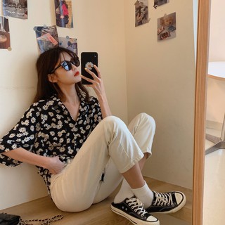 Áo sơ mi nữ SUXI tay ngắn dáng rộng họa tiết hoa cúc thời trang