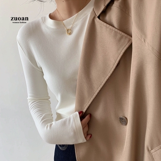 SUXI Áo Thun Tay Dài Cổ Tròn Màu Trơn Thiết Kế Đơn Giản Thời Trang Thu Đông