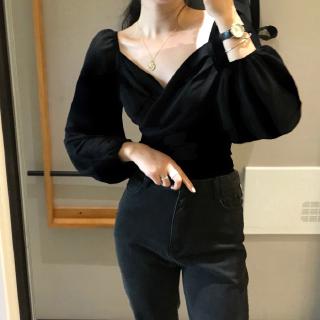 SUXI Áo kiểu cổ tim tay phồng phong cách Hàn Quốc thanh lịch dành cho nữ