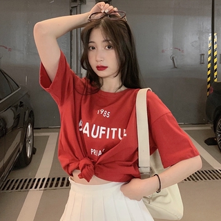 SUXI Áo Thun Nữ Tay Ngắn In Chữ Phong Cách Hàn Quốc