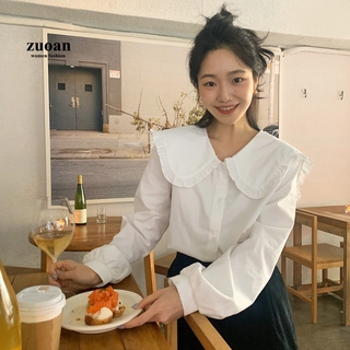 SUXI Áo Sơ Mi Trắng Cổ Bèo Dáng Rộng Phong Cách Hàn Quốc Cho Nữ