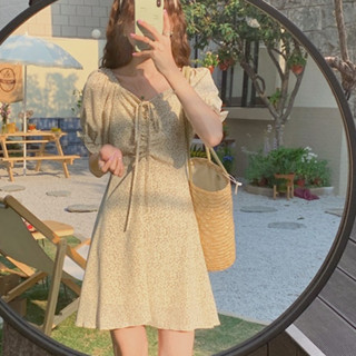 Đầm Hoa Tay Phồng Cổ Vuông Thời Trang Mùa Hè Xinh Xắn Cho Nữ