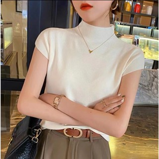 Áo thun SUXI dệt kim ngắn tay cổ lọ ôm dáng thời trang Hàn Quốc cho nữ