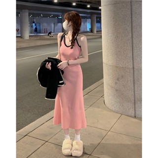 Set đồ SUXI gồm đầm hai dây dệt kim và áo khoác tay dài đơn giản xinh xắn dành cho nữ (Có bán lẻ)