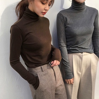 Áo thun SUXI cổ lọ dài tay dáng ôm dễ phối đồ đơn giản phong cách thu đông cho nữ