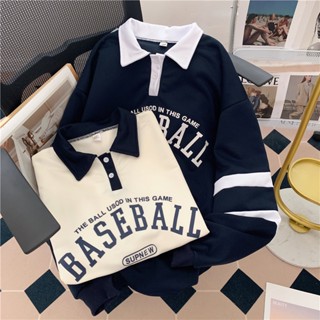 SUXI Áo Sweater Cổ Polo Dáng Rộng In Chữ Kiểu Vintage Dễ Phối Đồ Cho Nữ