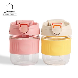 Cốc Thủy Tinh Borosilicate Cao Có Nắp Đậy Và Ống Hút Dung Tích 350ML