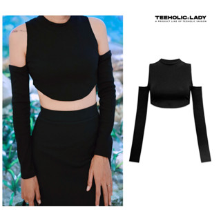 Áo croptop tay dài hở vai vạt bầu ôm body cao cấp cá tính sang chảnh màu đen quyến rũ local brand teeholic
