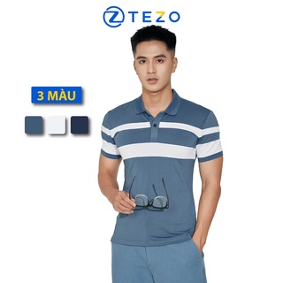 Áo polo nam Tezo hoạ tiết màu phối kẻ ngang ngực năng động thoải mái 22APCT008