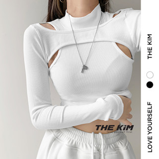 Áo croptop dài tay cổ cao khoét nách TheKim , áo thun tăm gân cổ 3 phân ôm body AD122