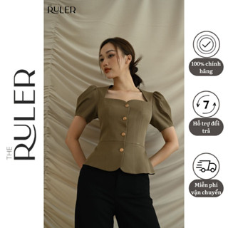 Áo cộc tay tay bồng Peplum chất vải chéo Ý THE RULER