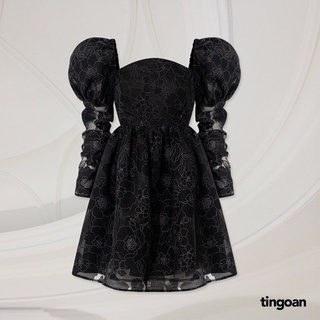 TINGOAN® - Váy vai bồng bóng kính vân hoa đen 3 lớp vải tingoan PRETTY IN ROSÉ DRESS/BL