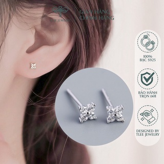 Khuyên tai bạc nữ TLEE nhí hoa đá bốn cánh nhỏ nhắn NCJ B0152