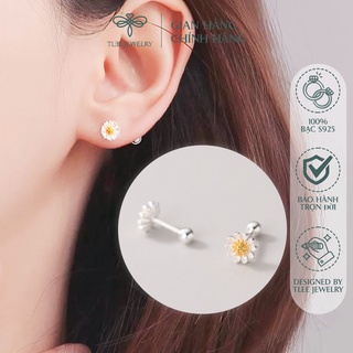 Khuyên tai bạc nữ TLEE hoa cúc chốt vặn xinh xắn NCJ B0127