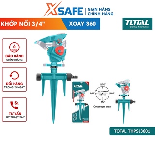 Đầu phun tưới 360 độ TOTAL THPS13601 Máy tưới nước bằng nhựa Kích thước 38*17,4*6,4cm, bộ khớp nối 3/4", 3 ty gài nhựa