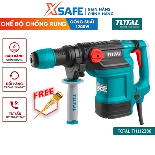 Máy khoan búa cầm tay TOTAL TH112386 1200W chống rung, tốc độ 760rpm, tốc độ đập 1950-4860bpm, khoan bê tông 38mm -xsafe