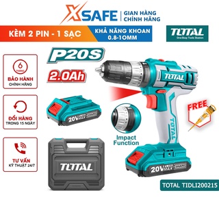 Máy khoan búa pin cầm tay 20V TOTAL TIDLI200215 nhông hai tốc độ 400-1500v/p, lực đập 22500v/p, kèm 2 pin 1 sạc - xsafe
