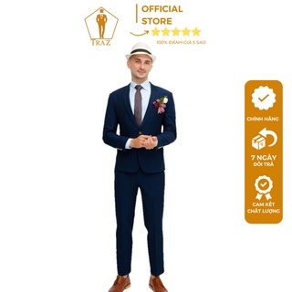 Bộ Vest Nam Màu Xanh Cổ Vịt 1, 2 Nút TRAZ Phom Ôm Hàn Quốc BoDy Cao Cấp Cho Công Sở Và Chú Rể(1 Quần Và 1 Aó Vest)