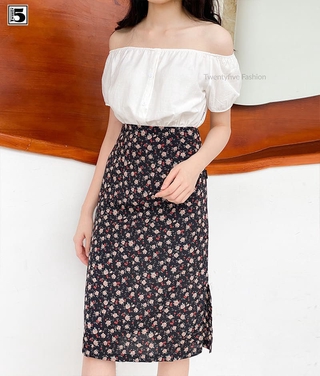 Chân váy voan hoa nhí 2 lớp vintage dáng dài xẻ vạt Twentyfive L31