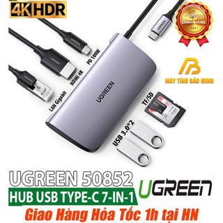 Hub chuyển đổi USB Type C 7 in 1 to HDMI, USB 3.0, Lan, đọc thẻ SD/TF, PD UGREEN 50852 - Hàng Chính Hãng