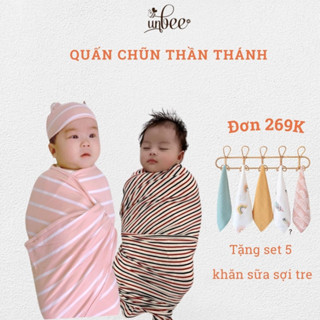 Quấn chũn Unbee kèm che thóp hình gấu cute 100% petit co giãn 4 chiều thấm hút mồ hôi 175*70cm