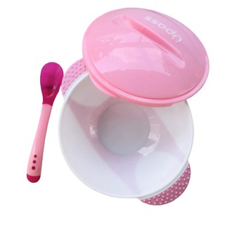 BÁT ĂN DẶM CHỐNG ĐỔ KÈM THÌA BÁO NÓNG UPASS UP5001W, Suzy baby