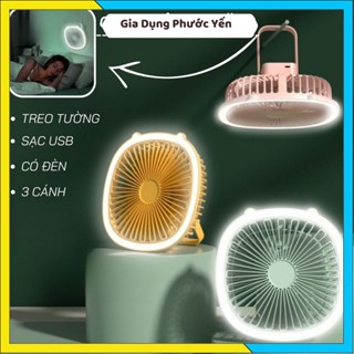Quạt tích điện treo tường mini 3in1 tích hợp đèn led dung lượng pin 1300mAh, sạc cổng USB [Chuột vàng 28]