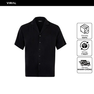 Áo Sơ Mi Cuban Nam Ngắn Tay Màu Đen - Black Satin Cuban Shirt V VRCL VIRAL CLOTHING