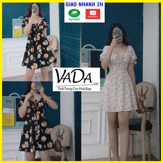 Đầm xoè hoa nhún ngực cột nơ hoạ tiết dễ thương nhẹ nhàng xuống phố - Thời trang VADA - V57