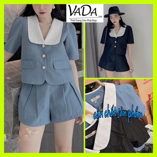 Sét bộ nữ chất dập nổi Quảng Châu Áo cổ bèo viền + quần sort so hot -Thời Trang VADA (F7)