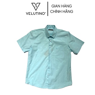 Áo sơ mi nam Velutino ngắn tay cổ bẻ có túi xanh họa tiết chấm vuông công sở cao cấp