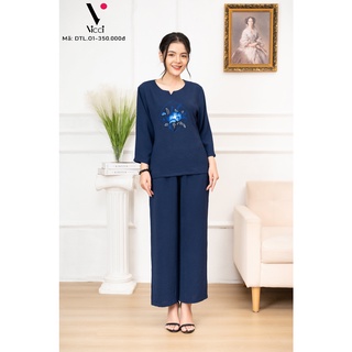 [BST Mới] Bộ mặc nhà trung niên cho mẹ, cho bà Vicci DTL01 thiết kế tay lỡ quần dài, chất liệu vải đũi chun mềm mịn