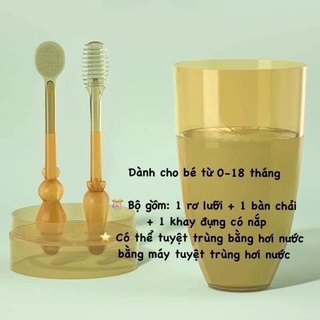 Bộ dụng cụ đánh răng tưa lưỡi silicon cho bé 0 - 18 tháng