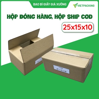 Hộp carton gói hàng, hộp giấy đóng hàng 25x15x10 tiết kiệm, giấy tốt, chắc chắn