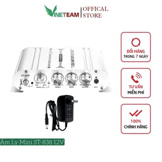 Âm ly mini 12v Vinetteam ST-838 HI-FI 2.1 amply khuyếch đại âm thanh công suất 20w dùng cho ô tô gia đình kèm nguồn