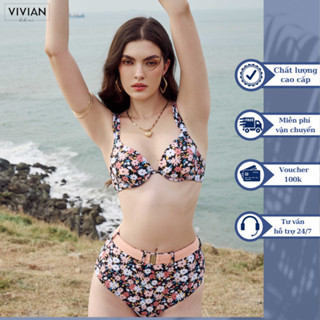 Đồ bơi nữ cao cấp 𝐕𝐈𝐕𝐈𝐀𝐍 dạng hai mảnh áo gọng quần phối dây nịt cách điệu - màu Floral - VS087_FLO